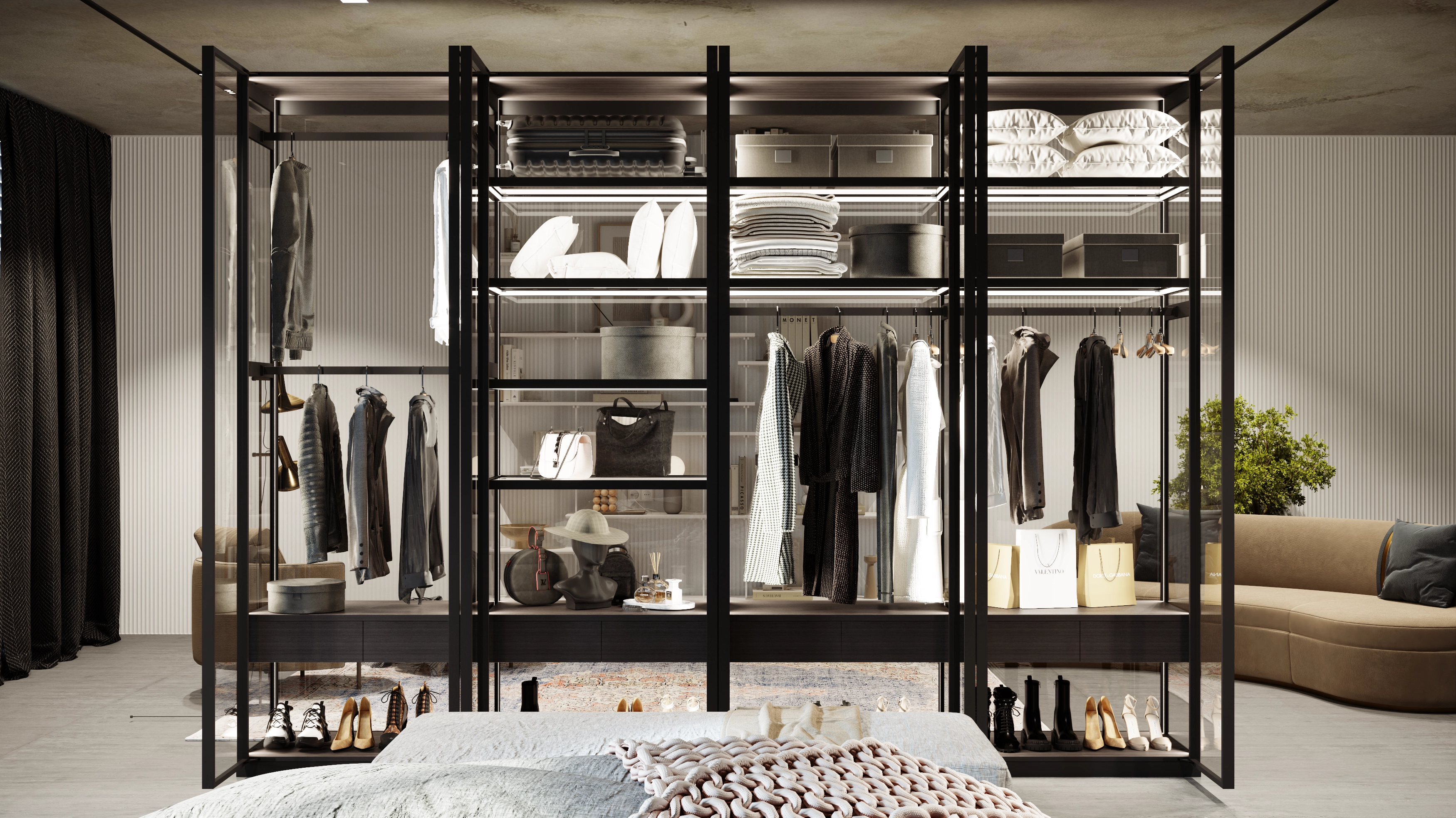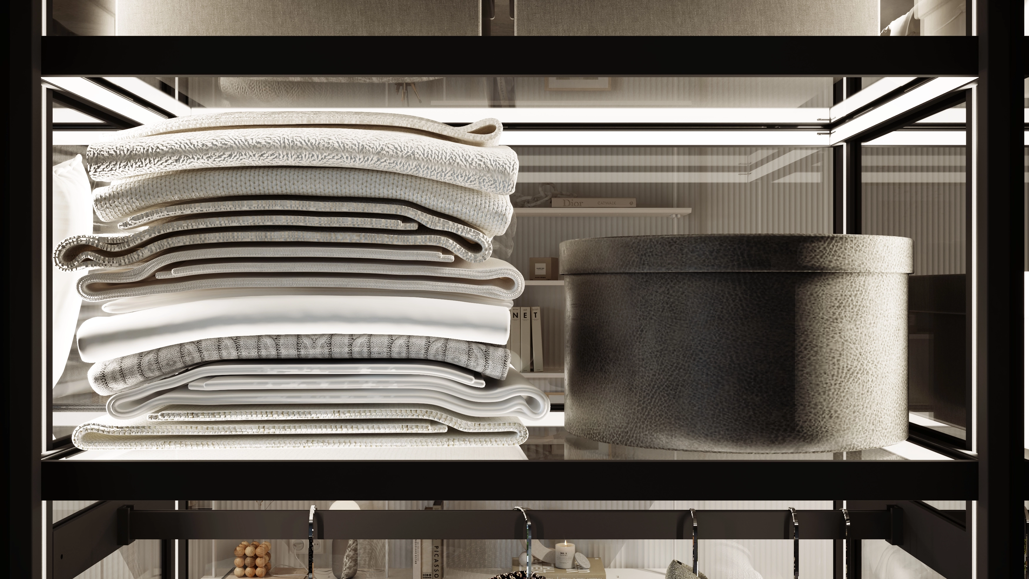 The modern AQUARIUM system allows you to make the cabinet completely transparent from all sides and use it as a showcase, thus giving a full view of things.