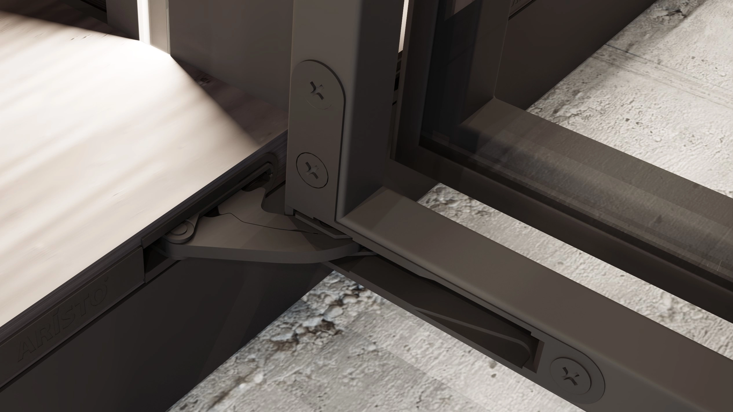 The EDGE MAX system is used as a door for the AQUARIUM cabinet. The special profile construction of the system ensures stability even to the highest facades and the soft closing system, integrated into hidden, flush-mounted hinges, provides an excellent level of comfort. Door opening angle is 100°.