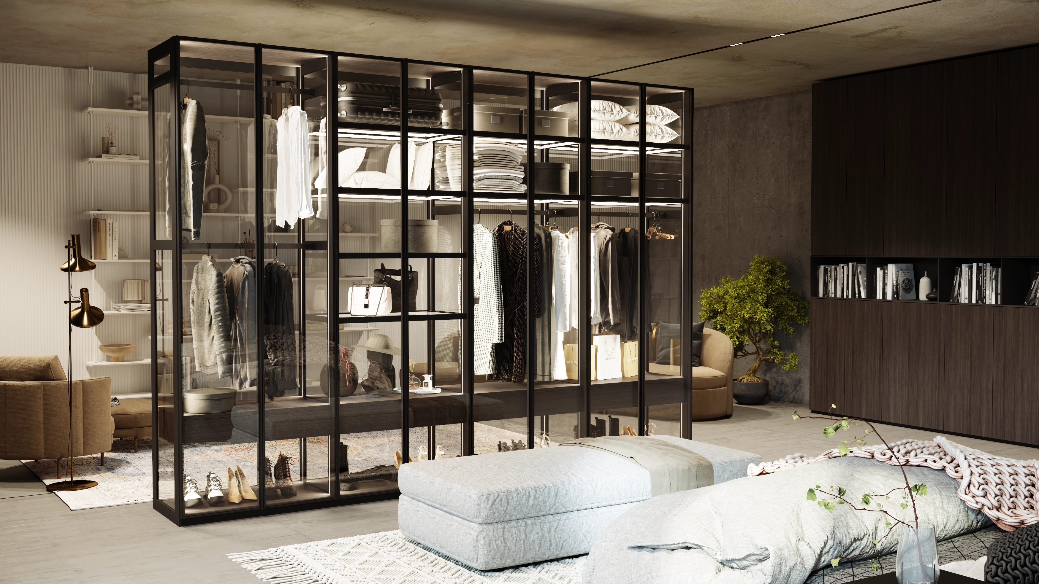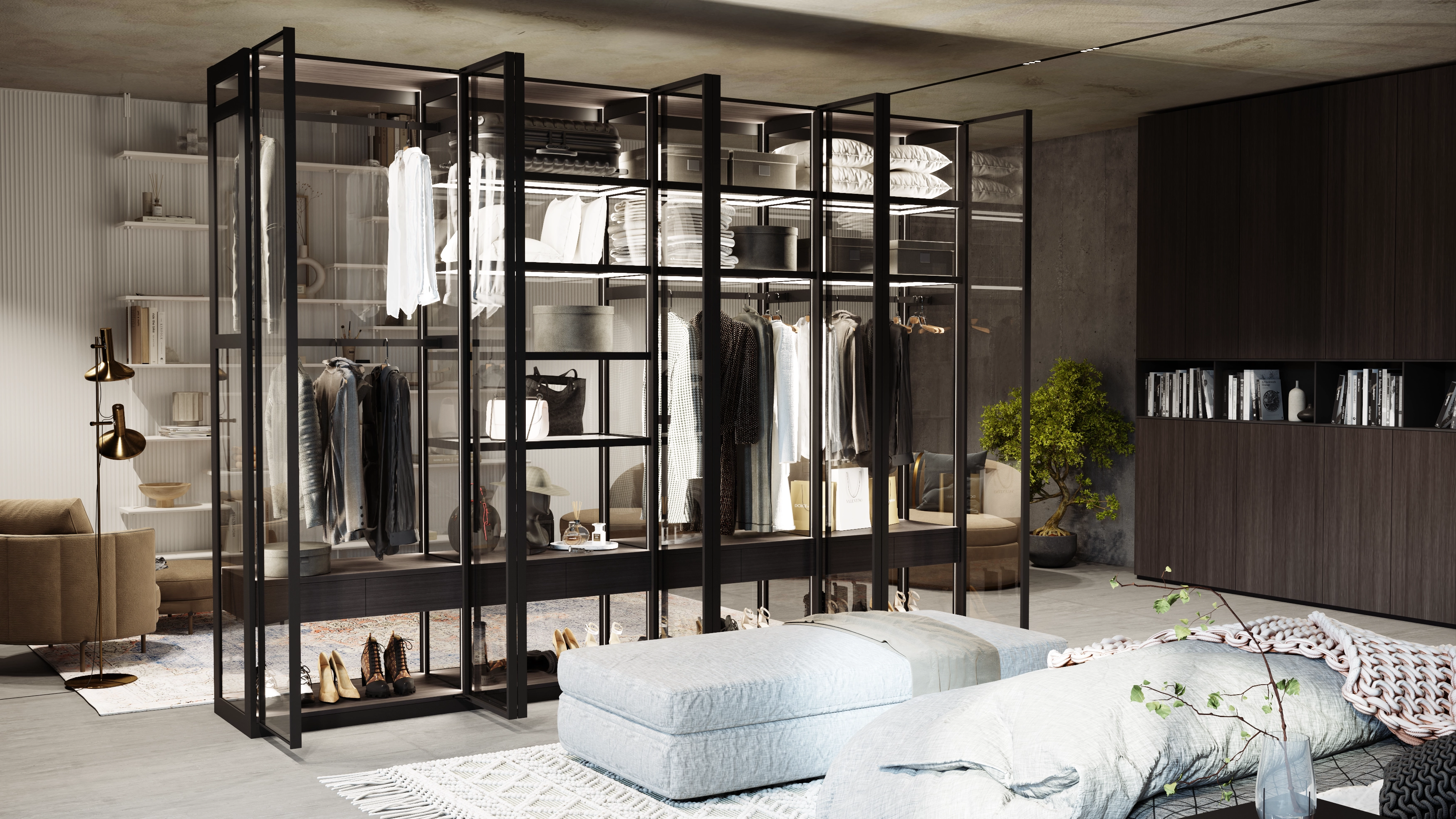 The modern AQUARIUM system allows you to make the cabinet completely transparent from all sides and use it as a showcase, thus giving a full view of things.