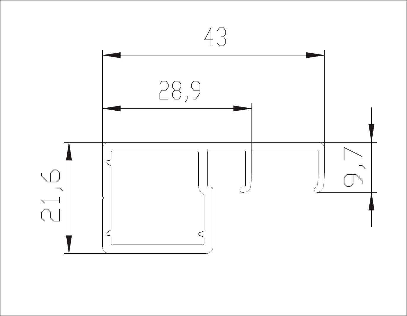 Slim facade profile 709, w/handle