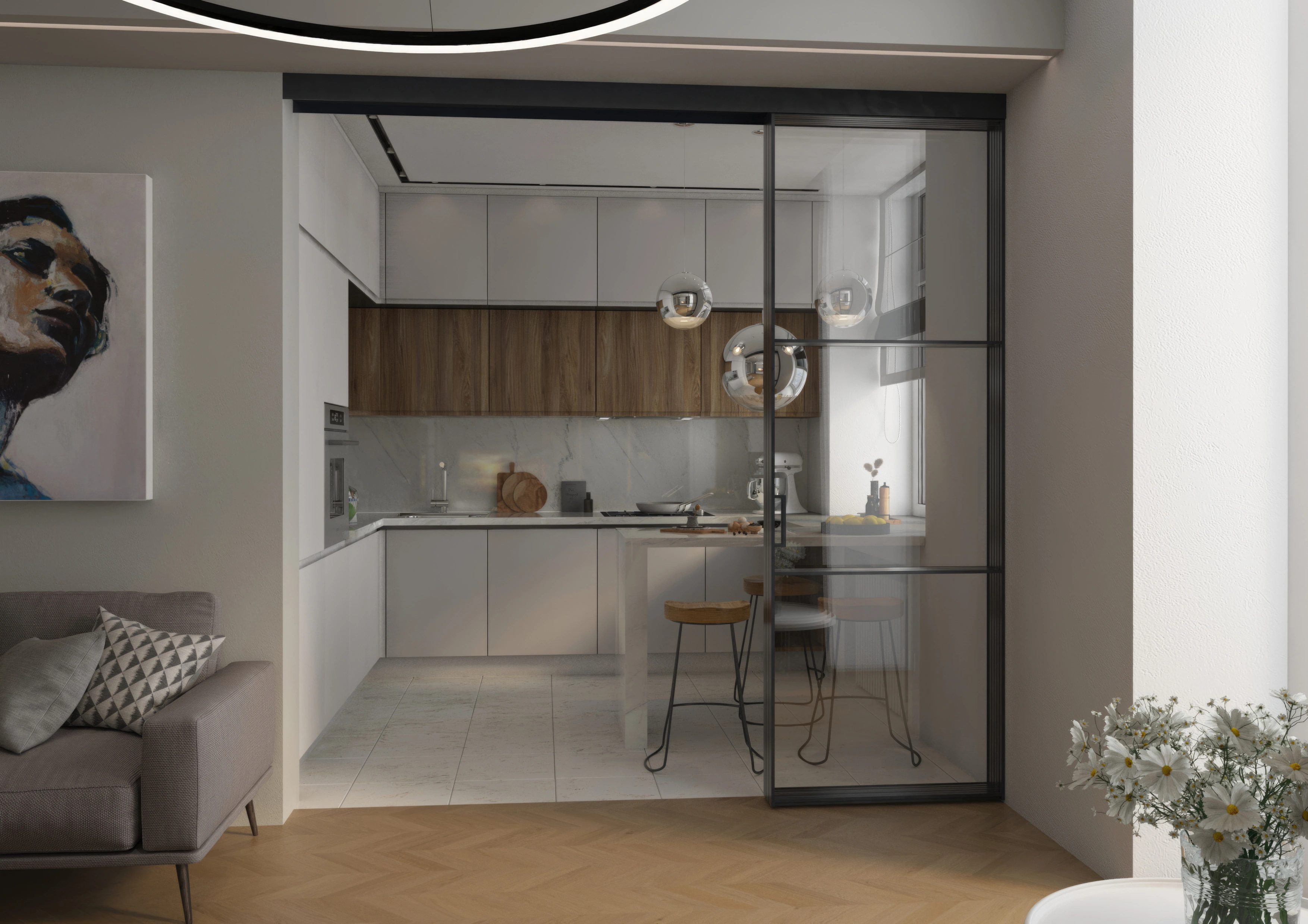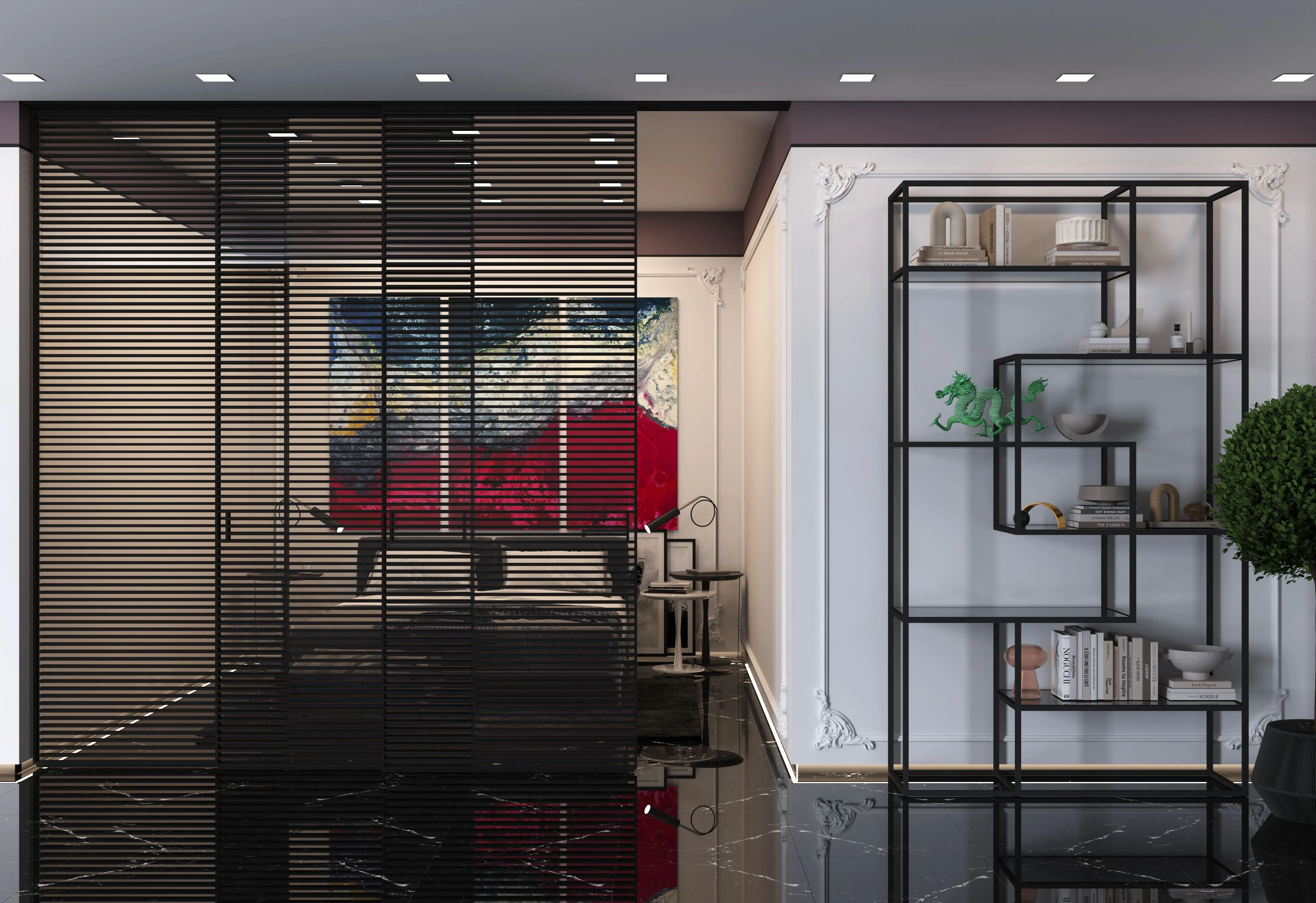 Fixed partition of the GRACE system is a convenient and stylish solution for dividing space and zoning rooms.
