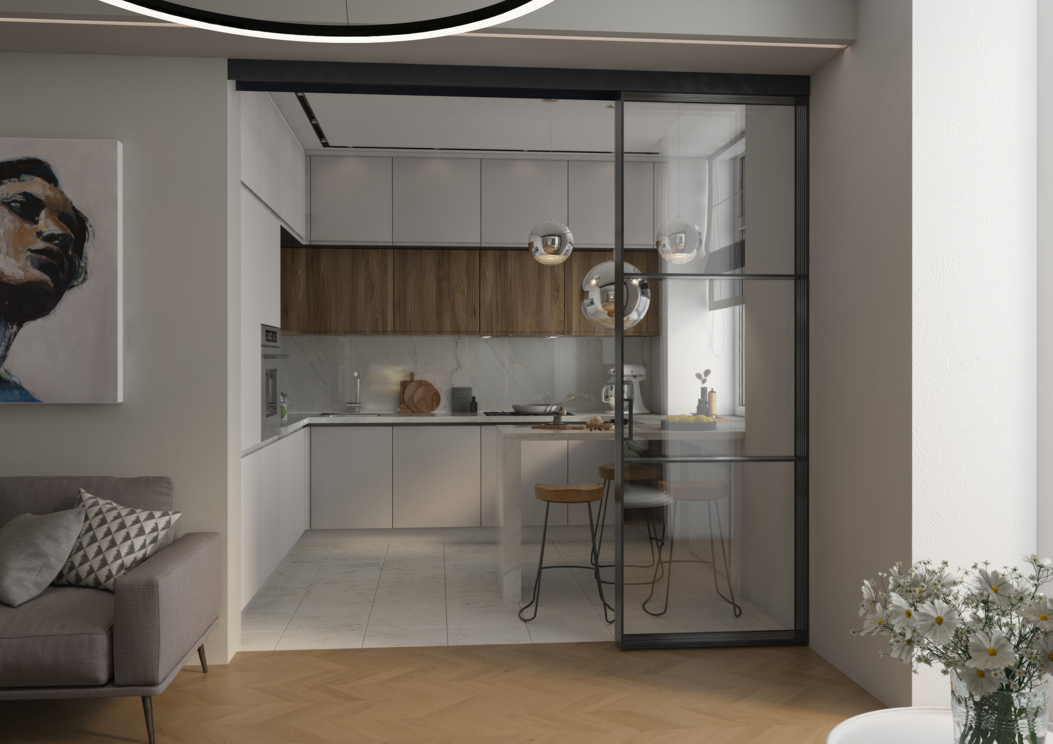 The GRACE system with glass inserts creates a feeling of lightness and space in the room.