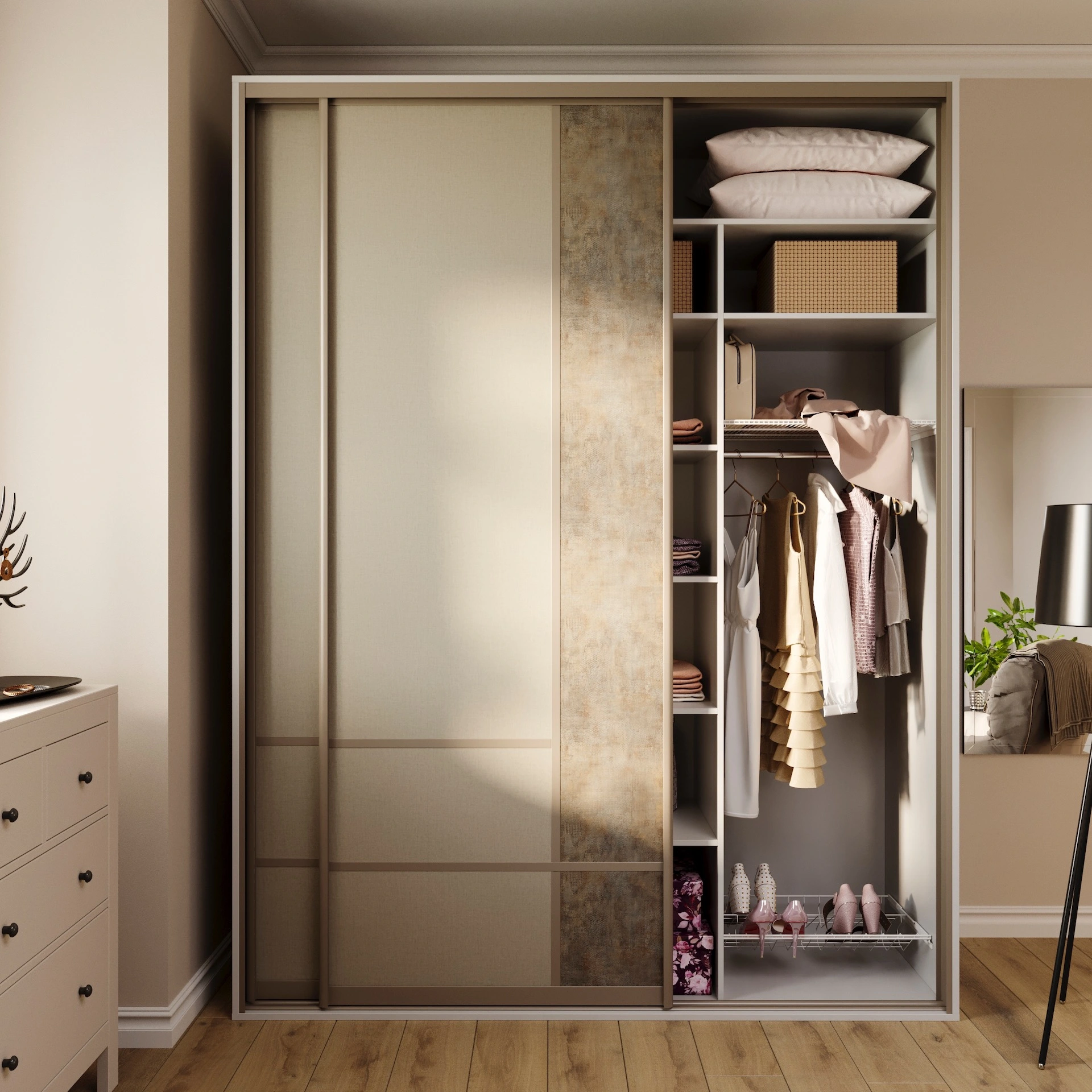 The system gives you a reliable option for any imaginable experiment: an extensive range of profile types, colours and decors allows for a truly unique configuration of a custom-made sliding door.