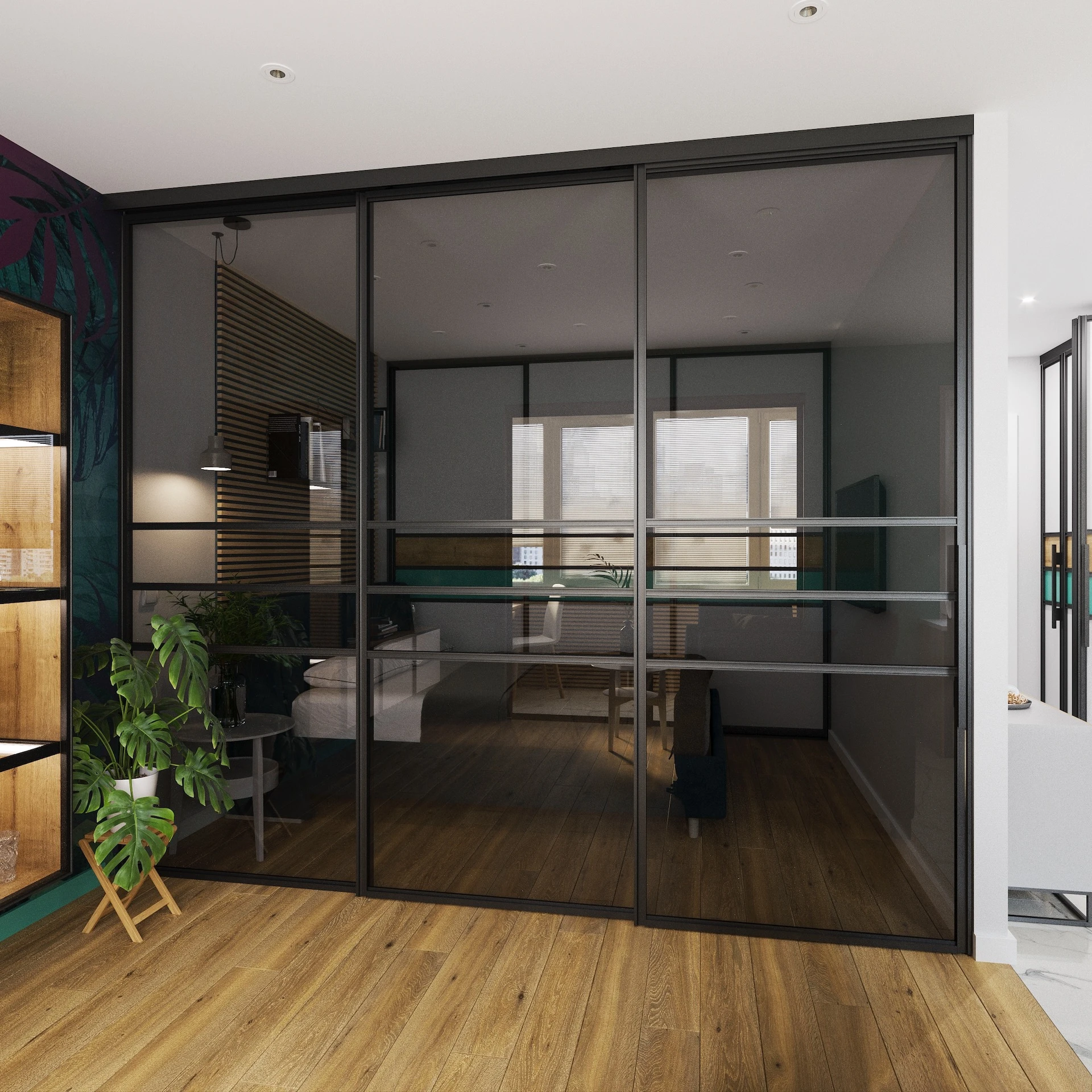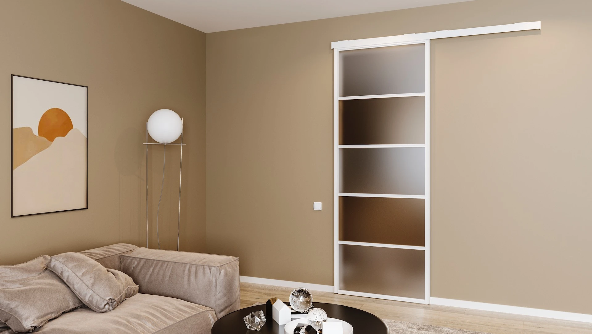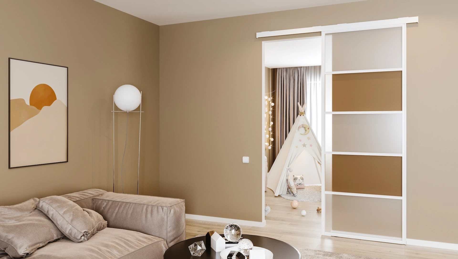 Without the bottom tracks, sliding doors become more applicable as a solution for example to divide different rooms.