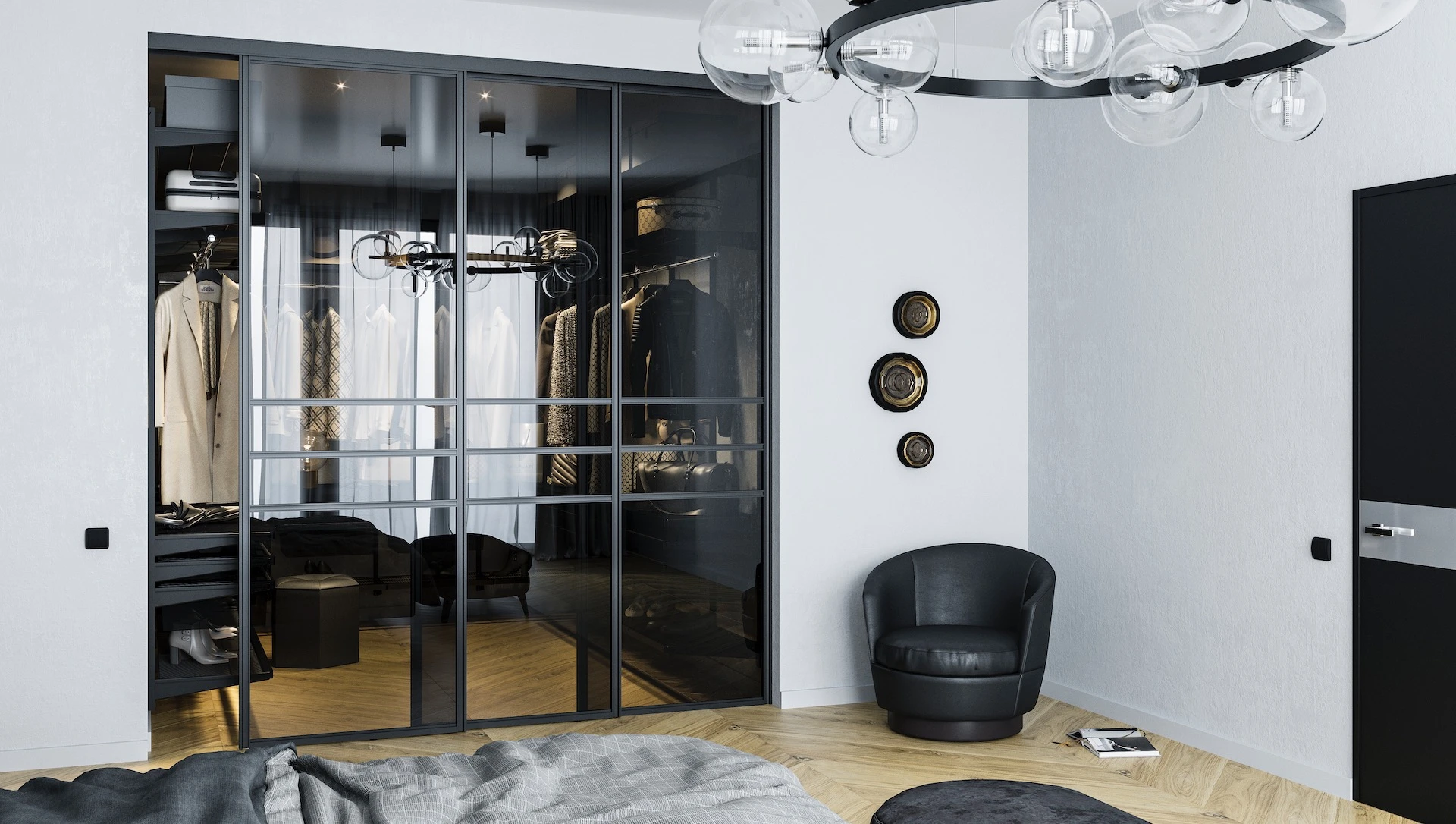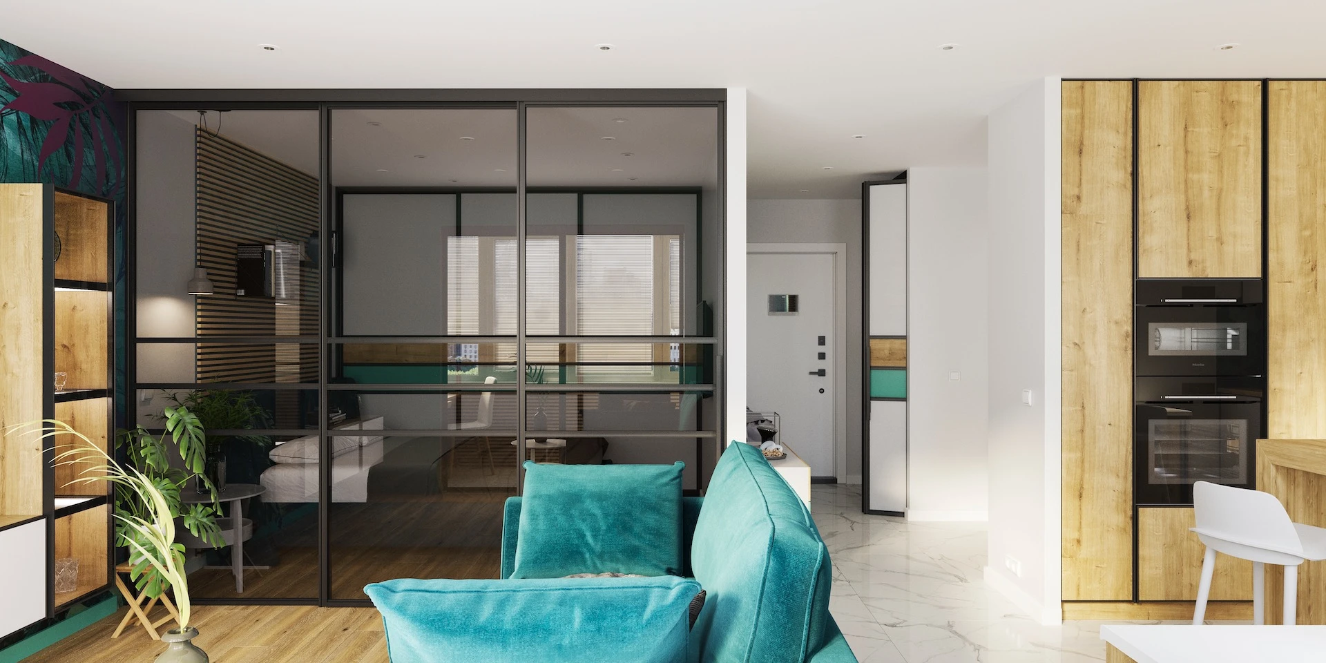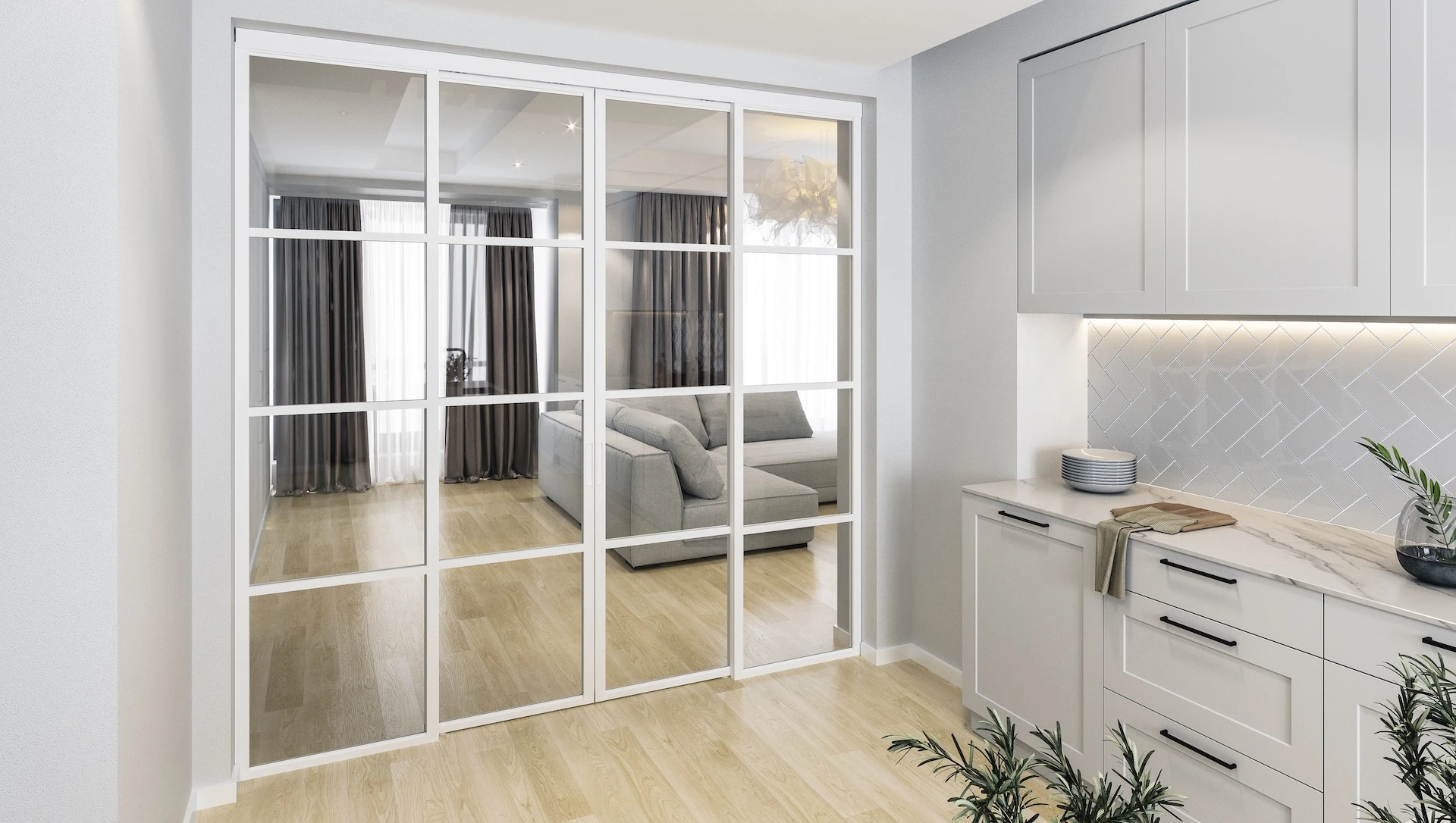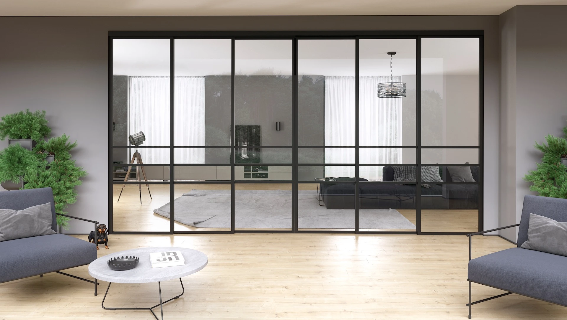 Without the bottom tracks, sliding doors become more applicable as a solution for example to divide different rooms.