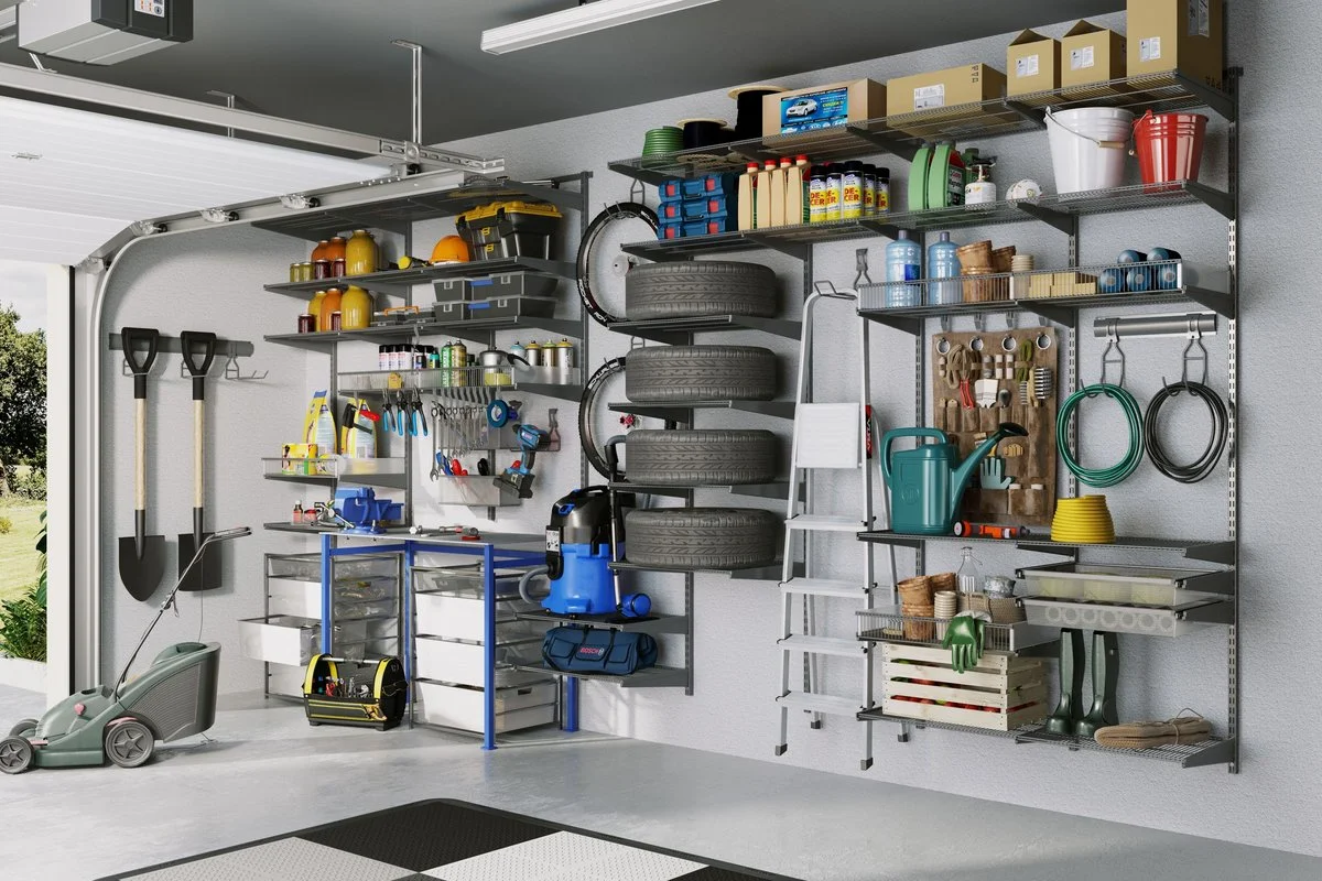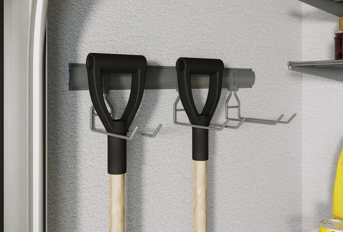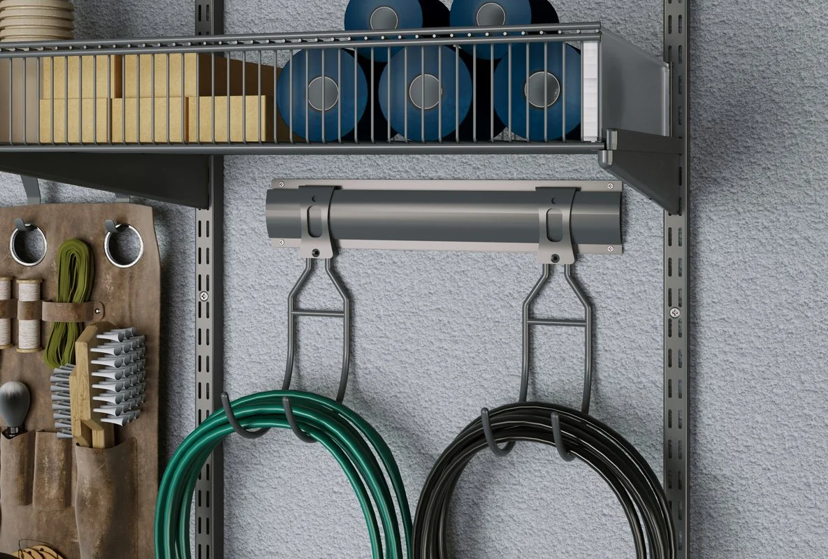 ARISTO storage system for utility room allows correct planning of the space and highlighting different zones: rarely used items, garden and hardware tools, sports equipment.