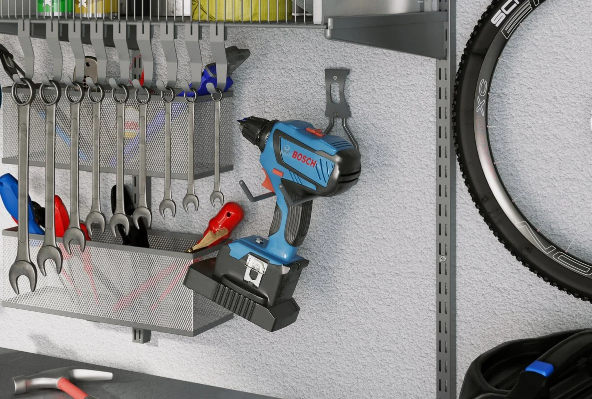 Wire shelves will not bend from the weight even of a heavy tool: each bracket can withstand up to 20 kg.