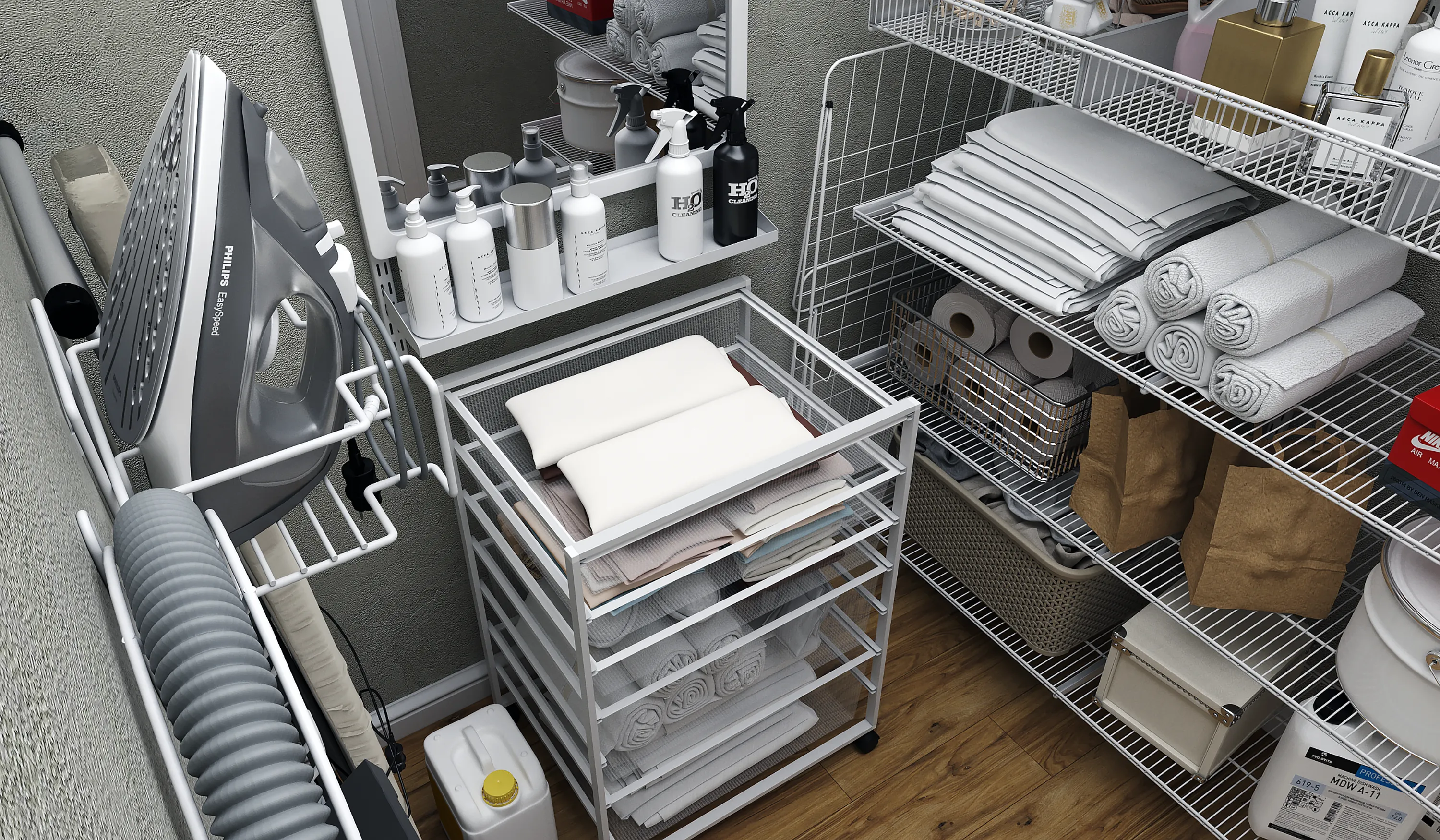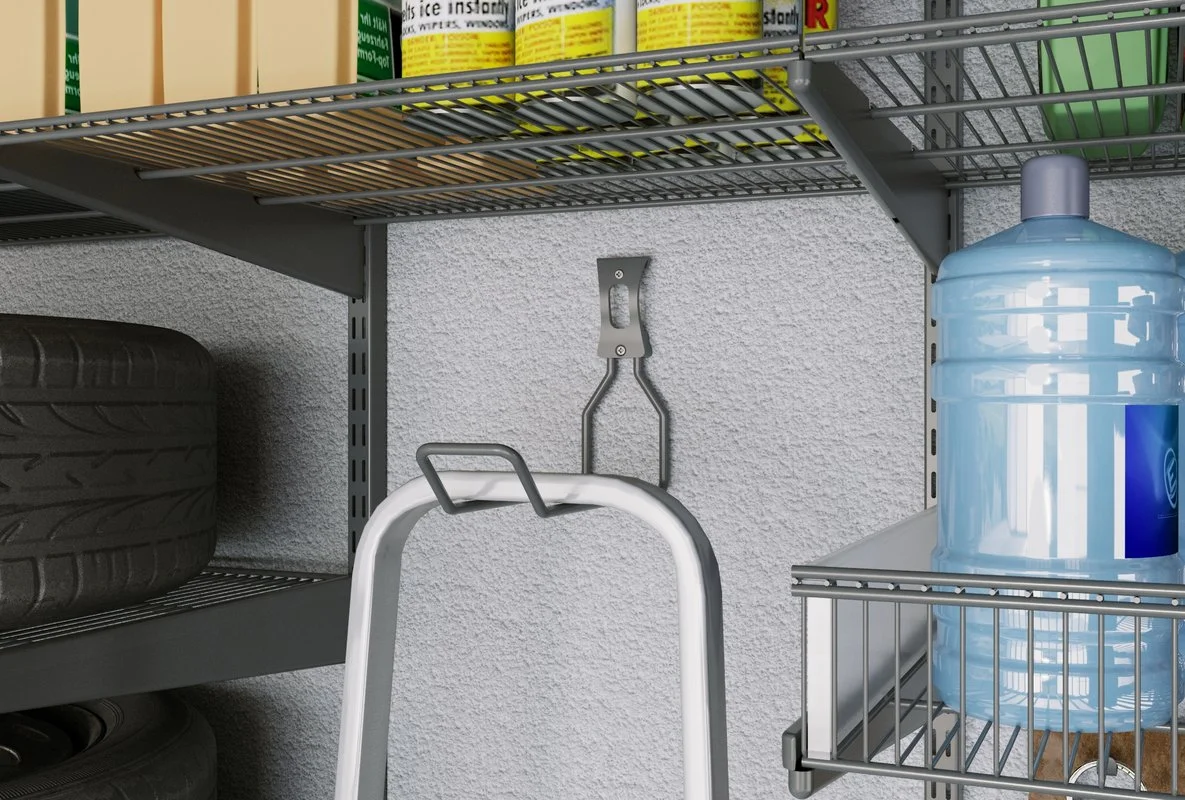 Hooks of the utility room storage system can withstand loads up to 23 kg.